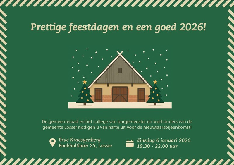 Het gemeentebestuur van Losser nodigt alle inwoners van Losser, Overdinkel, De Lutte, Beuningen en Glane, de besturen van verenigingen, vertegenwoordigers van instellingen en bedrijven, kortom iedereen, van harte uit om samen het nieuwe jaar te verwelkomen!